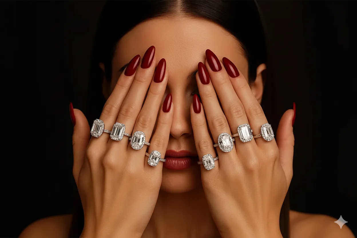 18K Gold Emerald-Cut & Pear-Cut Diamond Open Ring