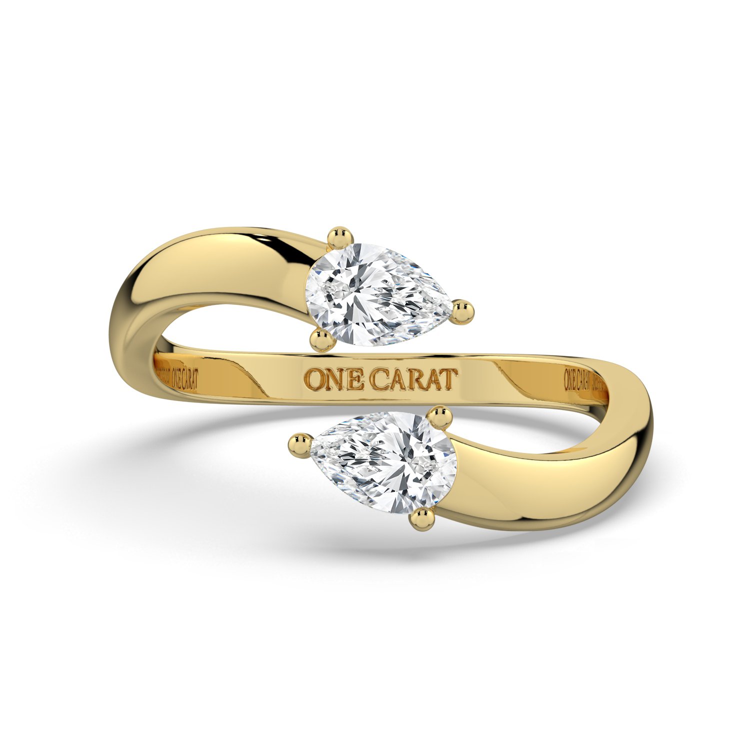 Grace meets modern design with the Double Pear-Shaped Diamond Bypass Ring From ONE CARAT, beautifully crafted in 18K gold. Featuring two brilliant pear-cut Lab Grown diamonds set on an open bypass band, this ring symbolizes balance, unity, and timeless elegance.