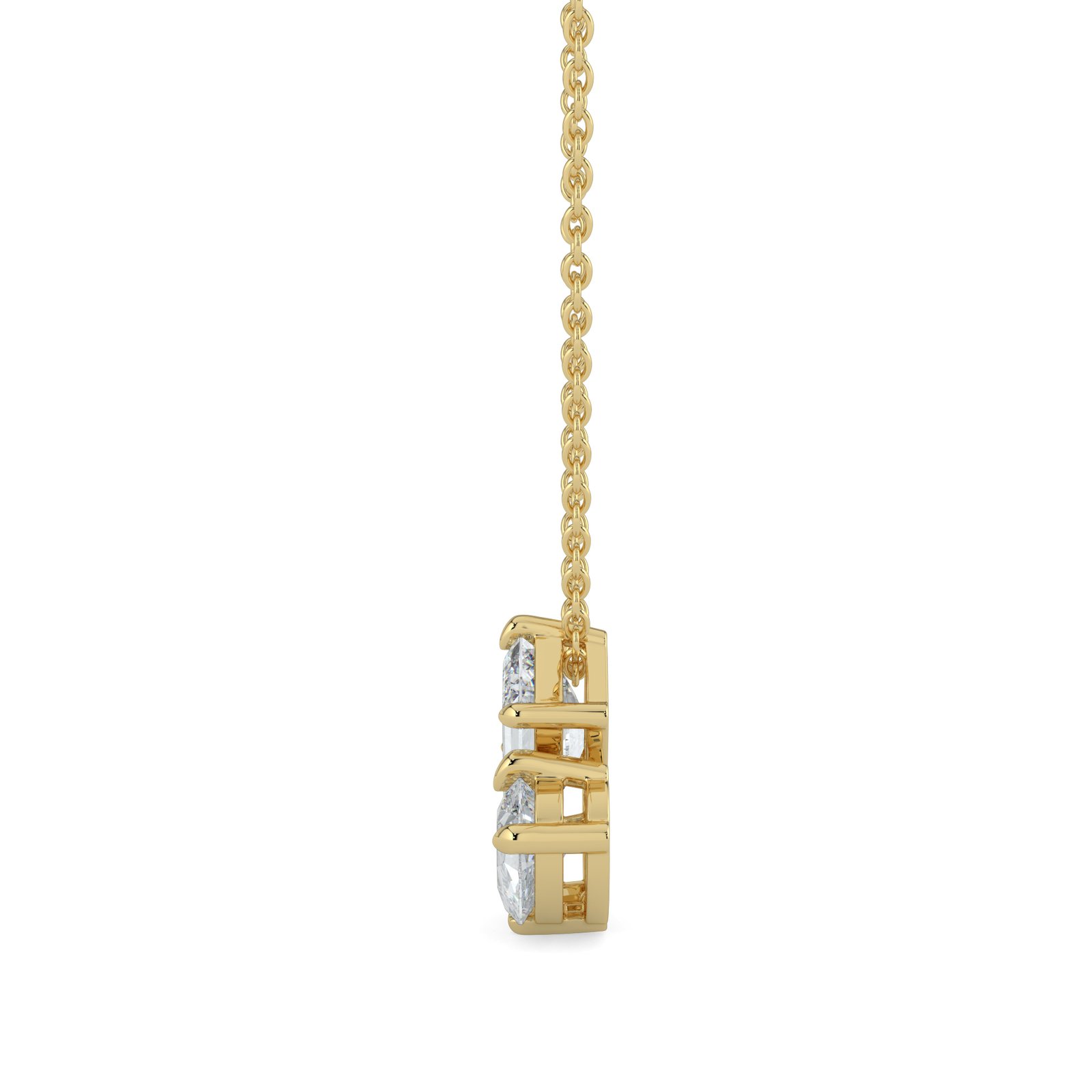 Indulge in classic sophistication with our Emerald, Pear & Marquise Trio Diamond Cluster Necklace in 18k Gold. This exquisite design showcases a harmonious blend of three dazzling cuts: a sophisticated emerald-cut diamond, elegant pear-shaped stone, and a brilliant marquise diamond. Expertly set in luxurious 18k gold, each stone is crafted to capture and reflect light from every angle, creating a breathtaking sparkle.