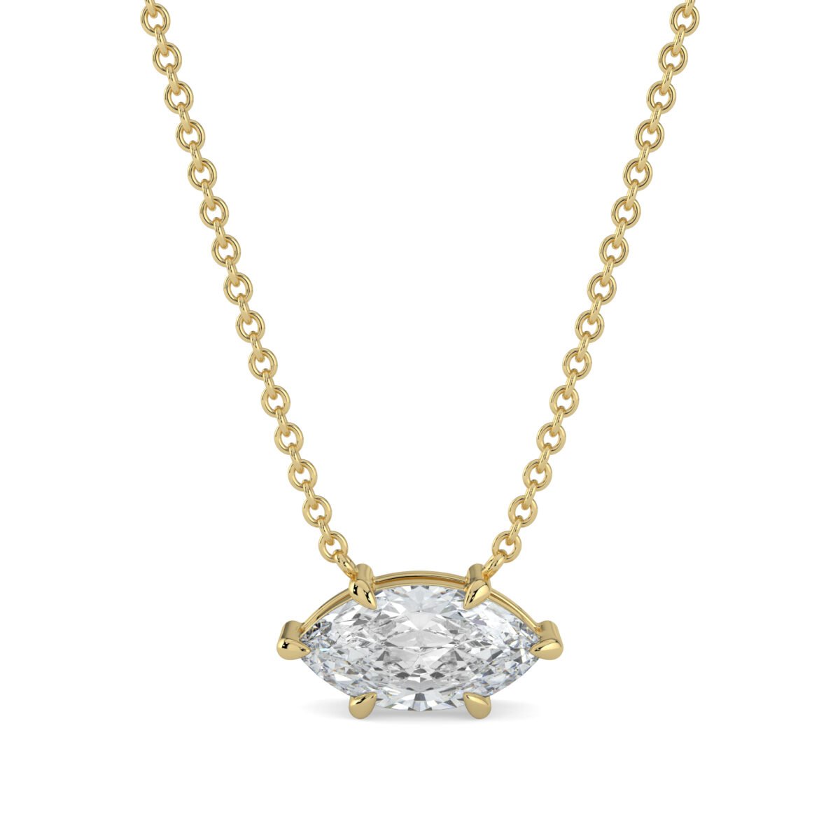 Crafted with timeless elegance, this One Carat Marquise-Cut Diamond Necklace in 18k Gold showcases a dazzling lab grown diamond that radiates brilliance from every angle. The unique marquise shape elongates the neckline, adding sophistication and sparkle to any look. Set on a delicate 18k gold chain, this diamond necklace is perfect for both special occasions and everyday luxury. An ideal choice for those searching for meaningful diamond gifts, this necklace embodies modern elegance and makes a treasured keepsake for your loved one.